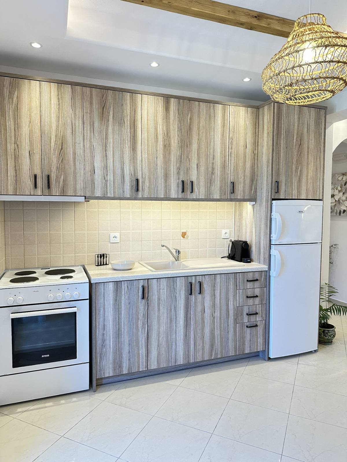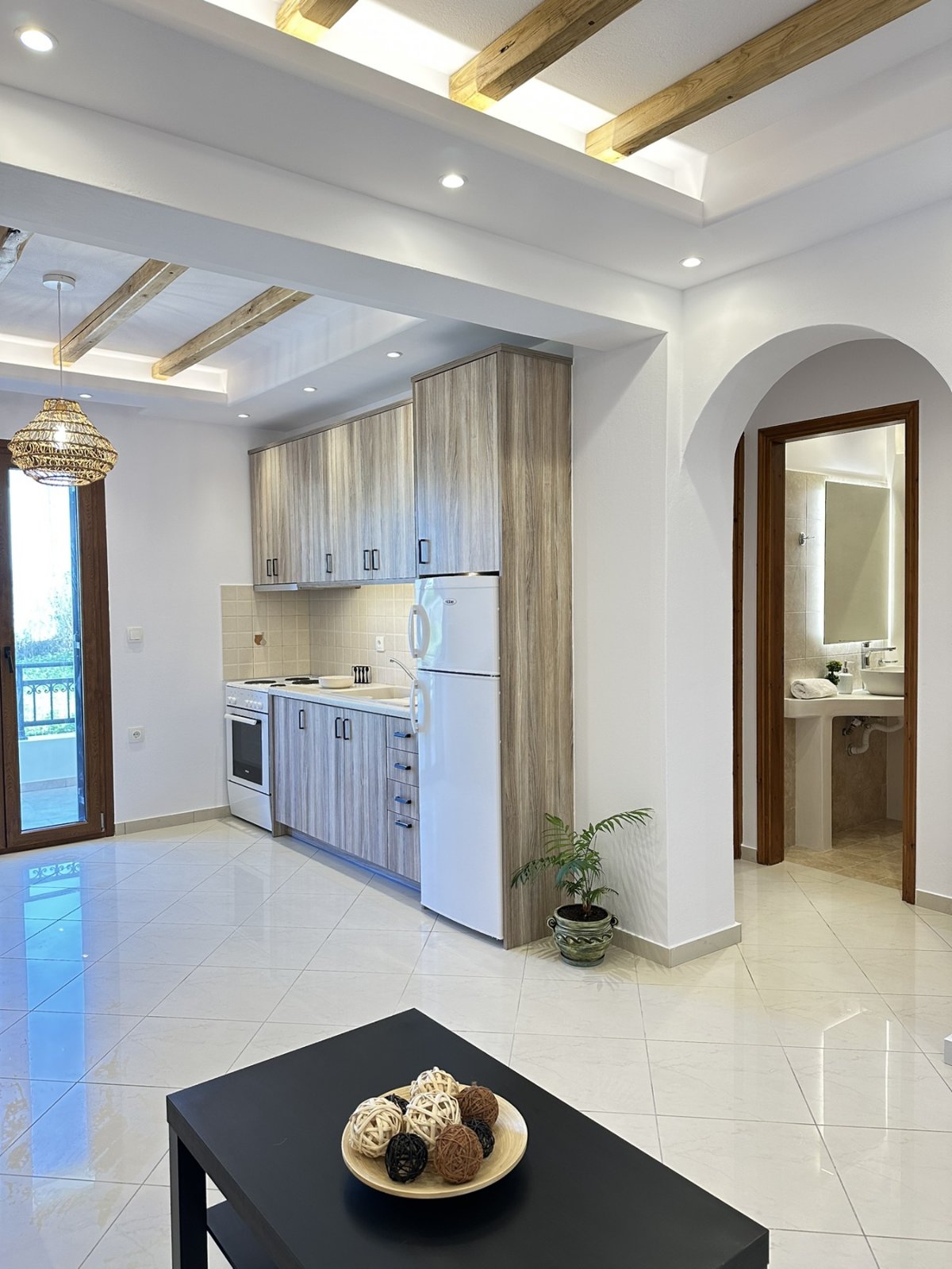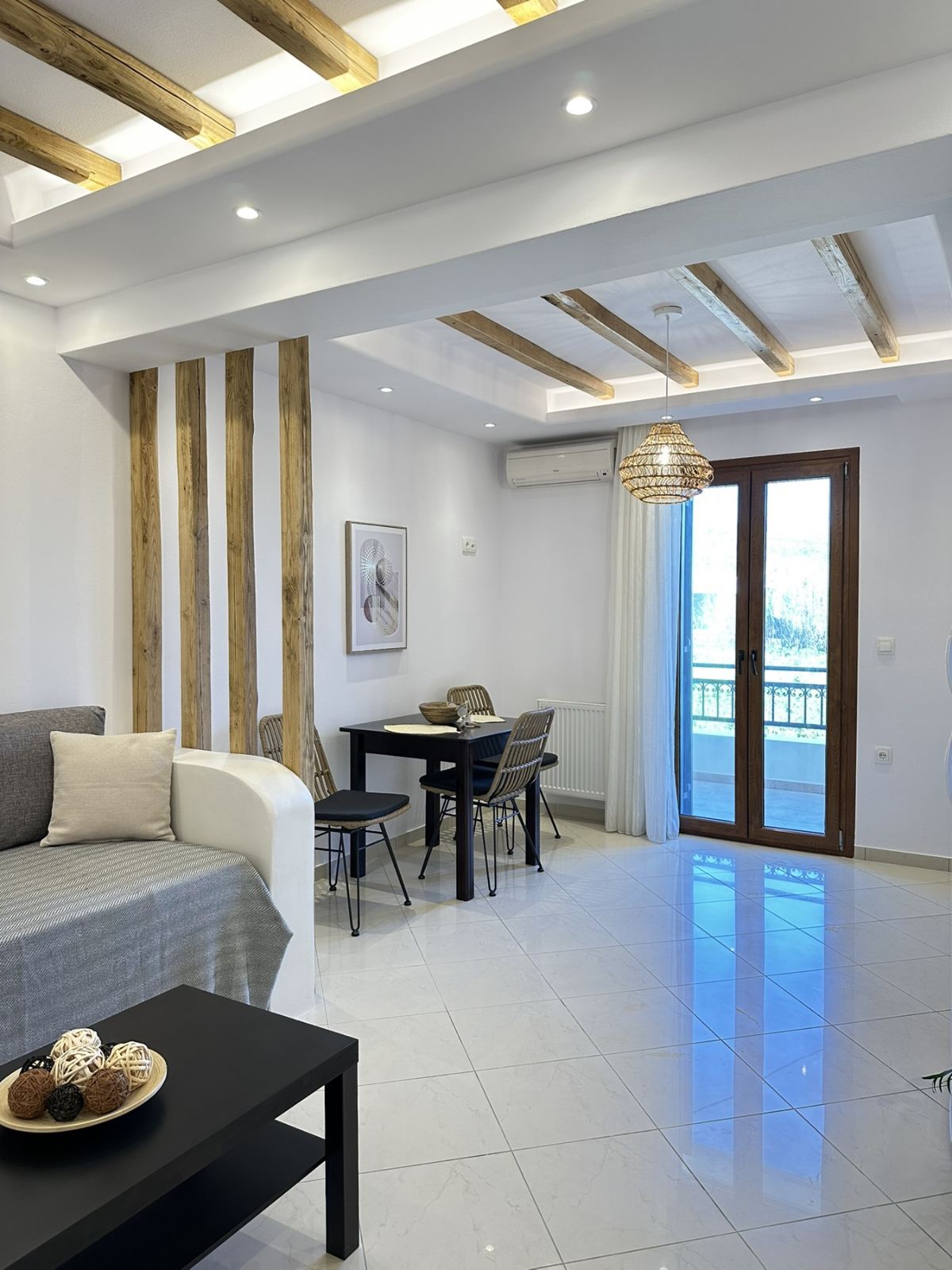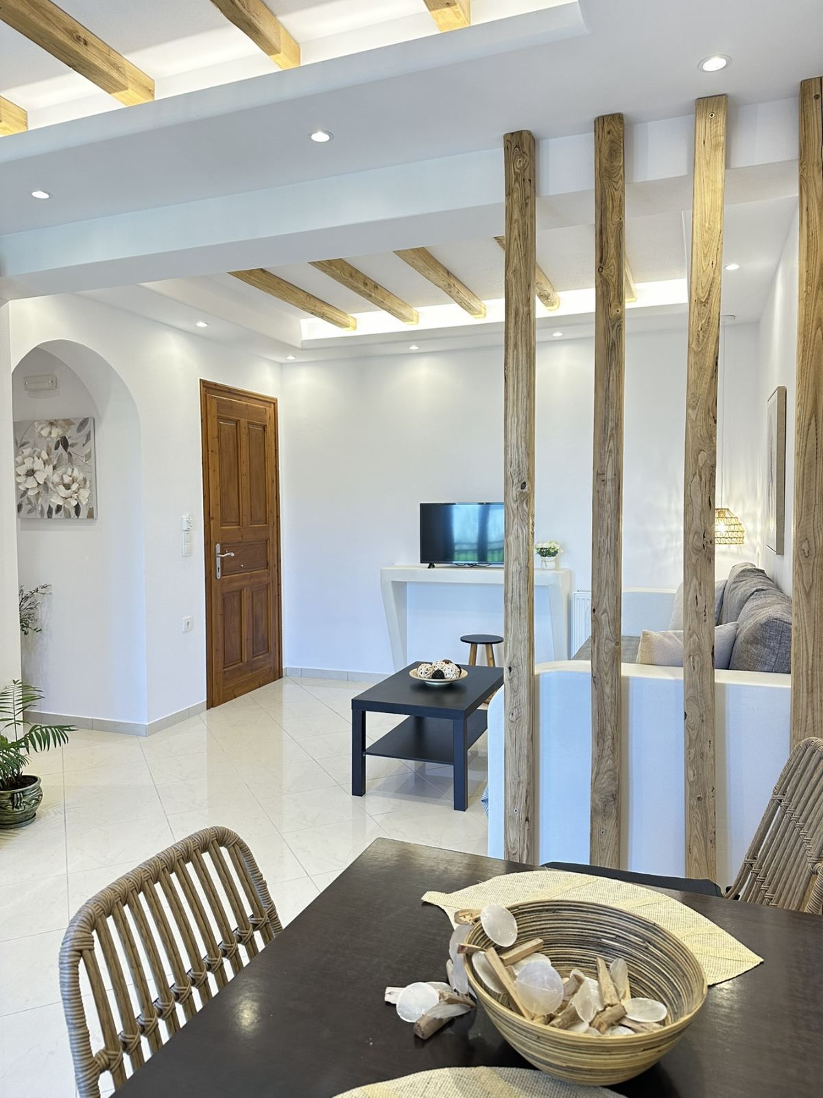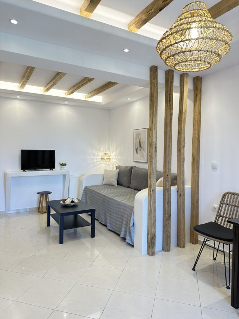 Sia’s House 4 is a welcoming apartment designed for relaxed and comfortable island living. The space includes a peaceful bedroom with a comfortable double bed, a bright living area with seating and TV, and a fully equipped kitchen with everything needed for preparing meals during your stay.